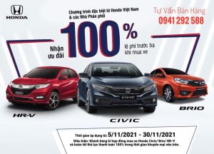 Hỗ trợ 100% lệ phí trước bạ cho khách hàng mua xe Honda Civic, Honda HR-V và Honda Brio trong tháng 12 năm 2021